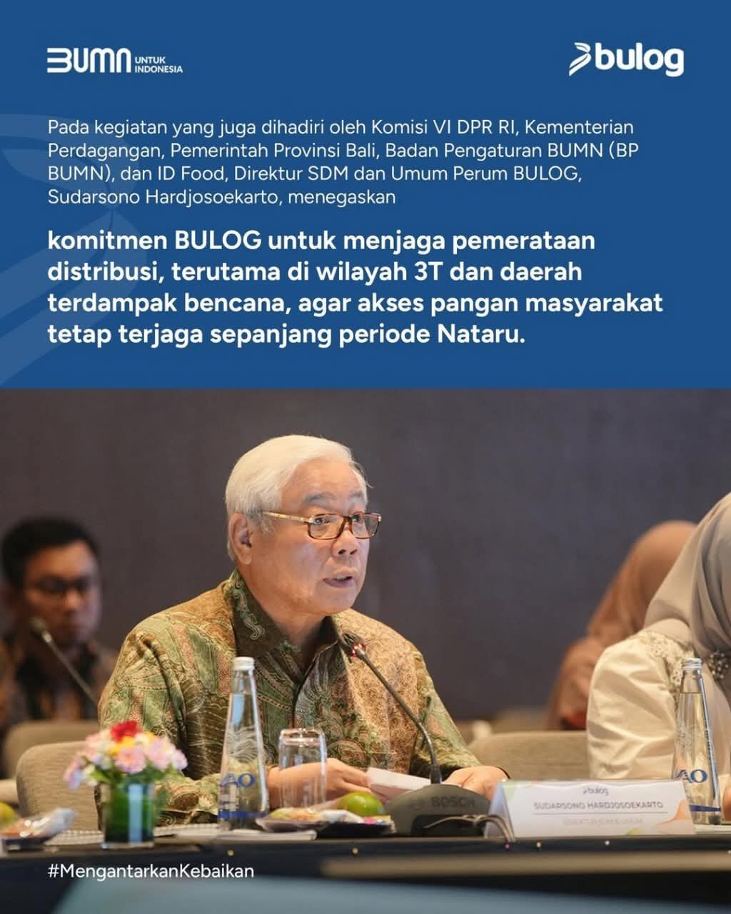 BALI, CorongMasyarakat.com – Perum BULOG menegaskan komitmennya menjaga stabilitas pasokan pangan nasional menjelang Natal dan Tahun Baru melalui penguatan stok, kesiapan infrastruktur penyimpanan, serta pemerataan distribusi hingga wilayah tertinggal, terdepan, dan terpencil (3T). Dalam rangkaian kunjungan kerja Komisi VI DPR RI di Bali, BULOG memaparkan bahwa seluruh langkah strategis tersebut telah dipersiapkan secara terukur agar kebutuhan pangan masyarakat tetap aman dan terjangkau di seluruh Indonesia.