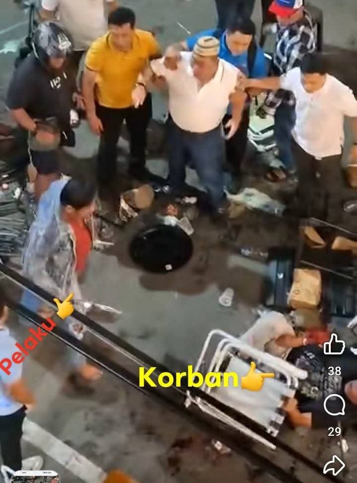Dalam hitungan detik, area di bawah jembatan—yang menjadi pusat aktivitas UMKM—berubah kacau. Pecahan kaca, kursi terbalik, dan barang dagangan rusak berserakan setelah pengunjung berdesakan mencari jalan keluar. Seorang saksi mengatakan pelaku terlihat memutar-mutar lilang sebelum mengayunkannya. Satu orang dikabarkan mengalami luka akibat penikaman tersebut, meski hingga kini belum ada keterangan resmi mengenai kondisi korban. Dugaan awal mengarah pada persoalan dendam pribadi sebagai pemicu insiden.