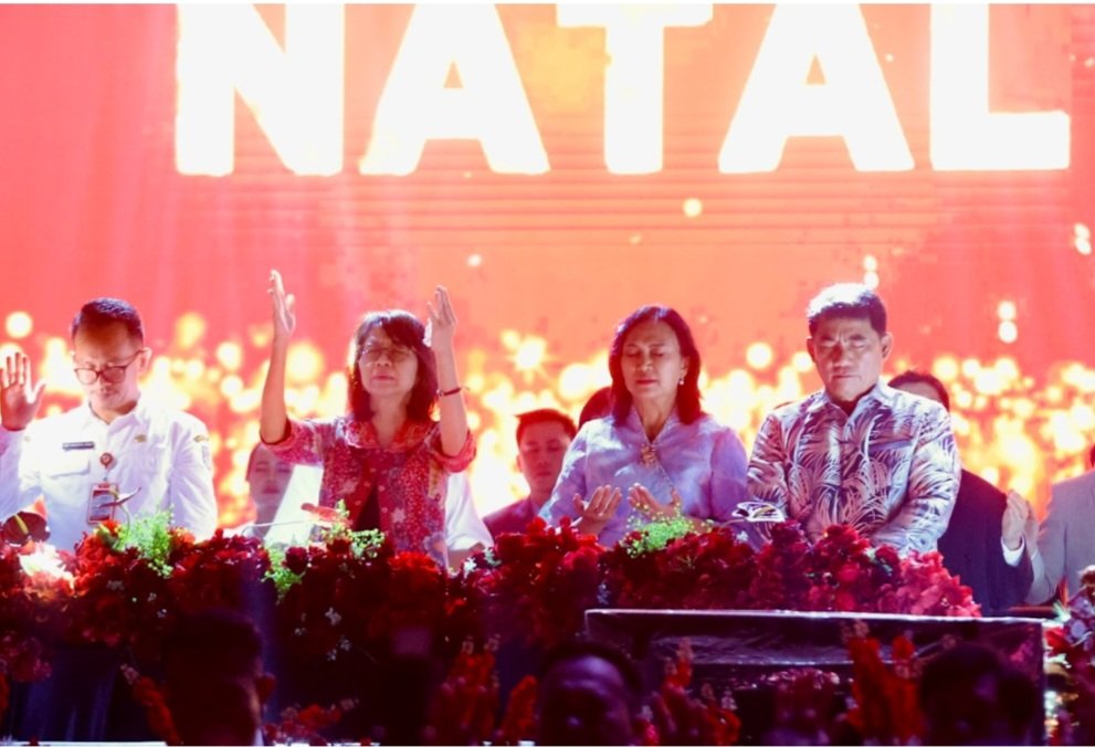 Gubernur juga menyampaikan apresiasi kepada jemaat dan panitia yang menyukseskan ibadah akbar ini. Melalui pesan Natal dan Tahun Baru, ia menegaskan pentingnya merawat kerukunan dan optimisme kolektif sebagai modal sosial Sulut. “Natal Tiberias mempersatukan kita semua. Semoga Natal 2025 menjadi berkat bagi pribadi, keluarga, dan masyarakat Sulut,” tutup YSK sebelum ibadah ditutup dengan pujian dan doa syukur.
