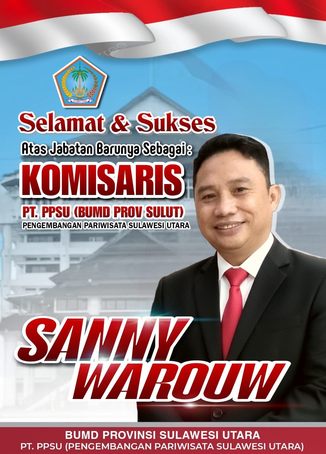 CorongMasyarakat.com ━ Sulawesi Utara kembali menorehkan babak penting dalam pembangunan daerahnya. Sosok Sanny Warouw STh, yang telah lama dikenal melalui kiprahnya di dunia usaha dan konstruksi, kini resmi dipercaya sebagai Komisaris PT. PPSU (Pengembangan Pariwisata Sulawesi Utara), sebuah BUMD strategis milik Pemerintah Provinsi Sulut. Keputusan ini bukan hanya penunjukan formal, tetapi cerminan kepercayaan bahwa pengalaman dan visi besar Sanny akan memberi warna baru dalam mengangkat sektor pariwisata daerah ke level yang lebih tinggi.