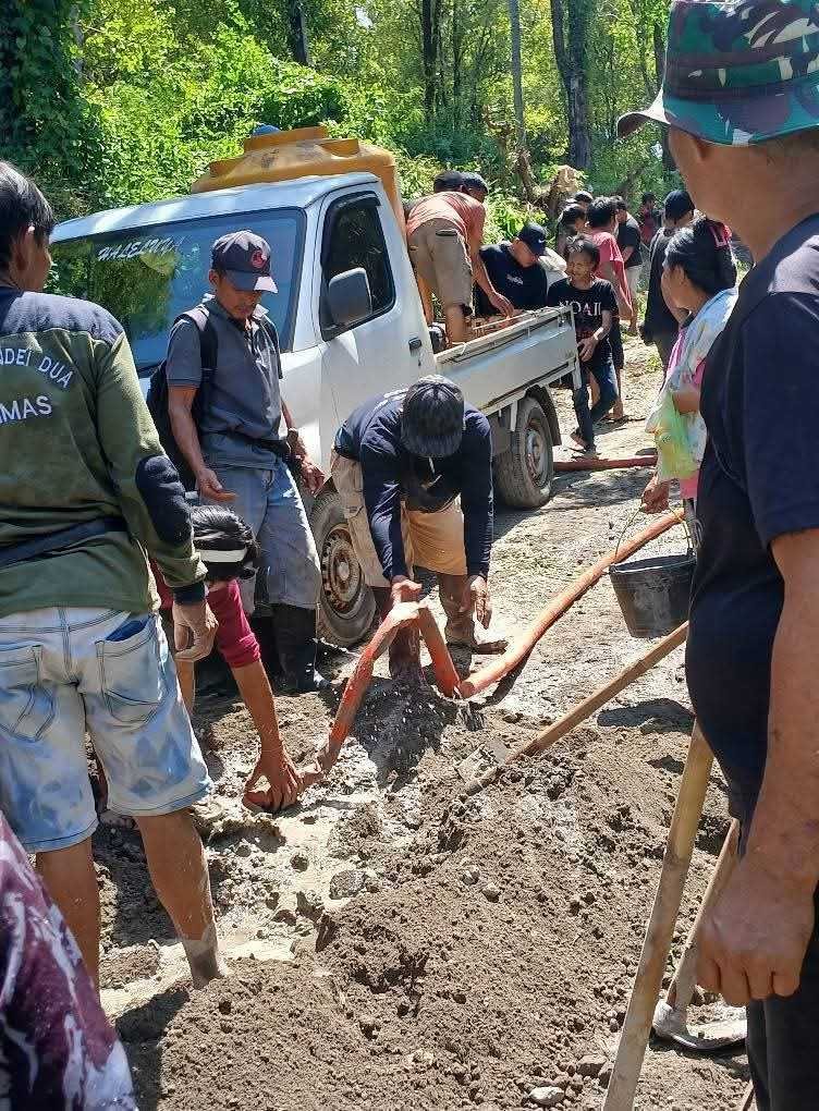 Ket foto: Ratusan warga Tondei Raya dan Ongkaw kompak cor jalan rusak, jadi bukti kekecewaan pada pemerintah yang 10 tahun tutup mata. (Foto: istimewa)
